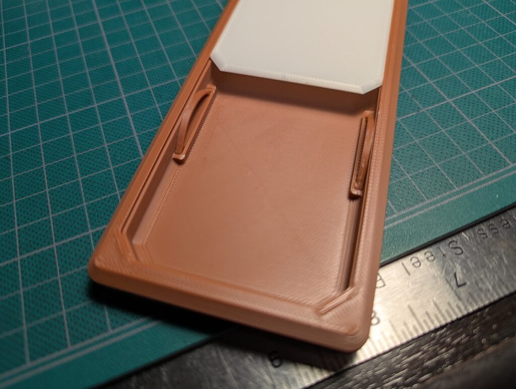 A short while ago I decided to design a small container with a sliding lid that could be 3D printed easily, and would require no fiddly supports or anything.