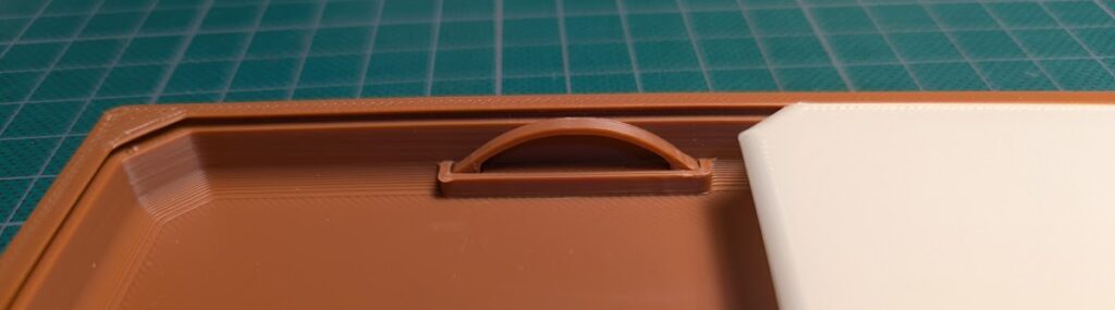 I settled on what you see in the header image: a type of spring that pushes up on the lid, keeping it tight by friction, but with enough wiggle room to not be too picky.
